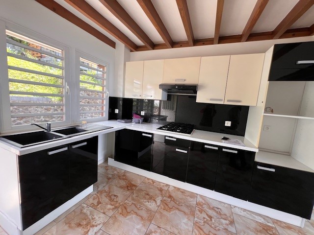 Très belle maison de 100.67 m² sur 2 niveaux, comprenant quatre chambres, une salle de douche, une salle de bains, deux toilettes séparées, une cuisine équipée et ouverte sur salle à manger.